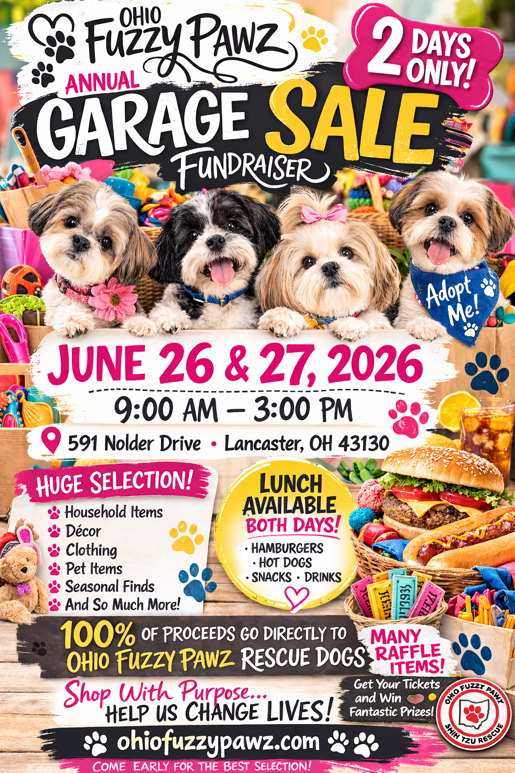 All proceeds benefit dogs rescued by Ohio Fuzzy Pawz.